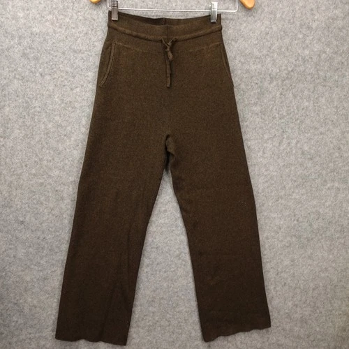 Uniqlo Rib Pants Womens M Brown Ankle Crop Drawstring Lounge Washable Knit 24x26