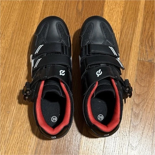 Peloton Road Cycling Shoes Black Red White EU 39 Unisex with Cleats