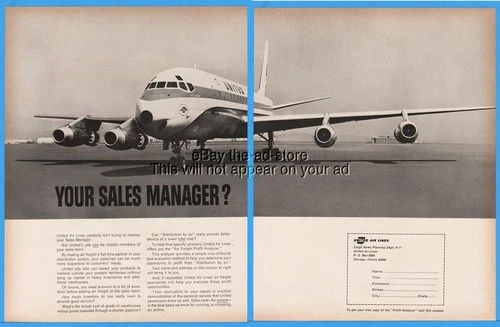 1963 United Airlines Cargo Freight GREAT Jet Photo On Airport Runway Print Ad