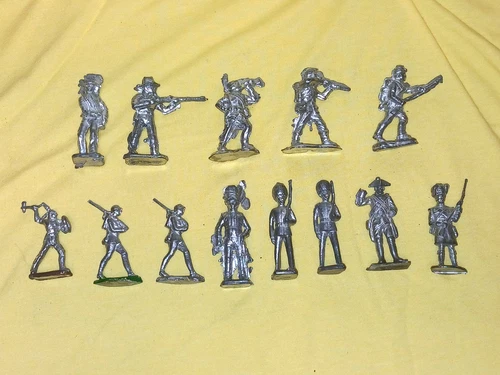 VINTAGE LOT OF (13) MIXED 2"-3" UNPAINTED LEAD MOLDED SOLDIERS & ASST FIGURES