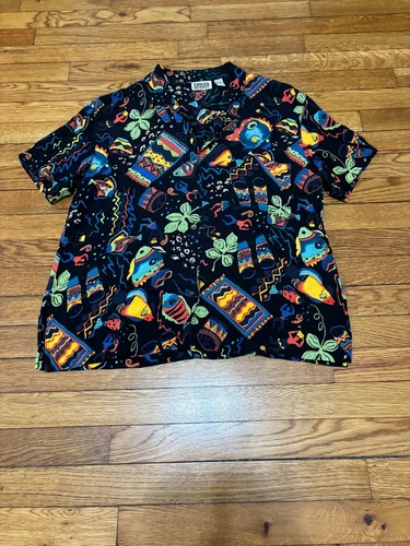 Chico's Design Womens Shirt Size 1 (US 8) Art to Wear Colorful Button Up Blouse