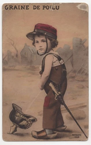 Child Urinating in German Helmet French World War I Postcard