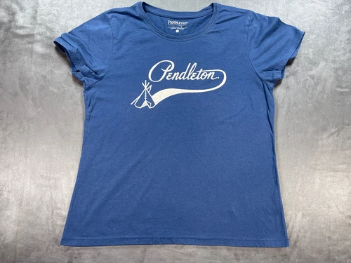 Women's Round Neck PENDLETON Shirt Large Tee Pee Outdoor Hike RV Traveler Blue