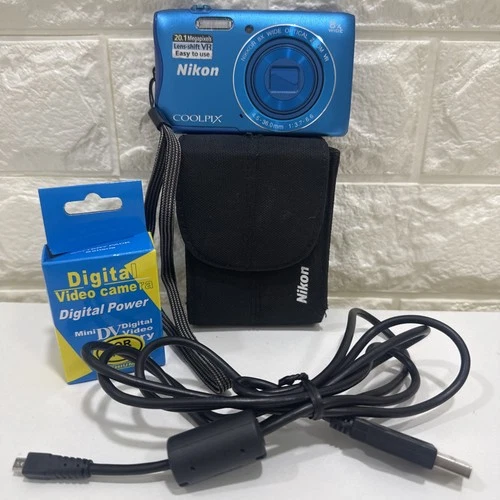 Nikon Coolpix S3700 20.1MP Digital Camera Nikkor 8x BlUE - Tested W/NEW BATTERY