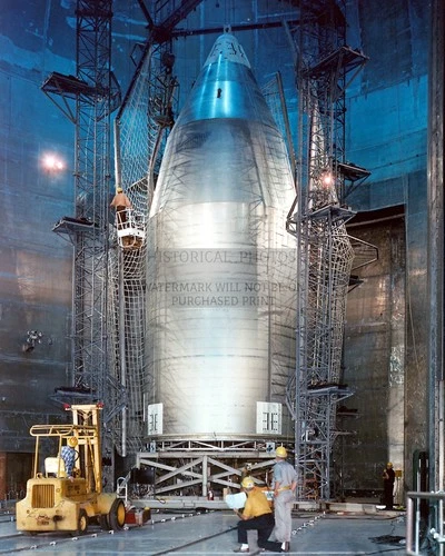 SKYLAB SHROUD MOUNTED IN PLUM BROOK VACUUM CHAMBER 1970 4X6 PHOTO