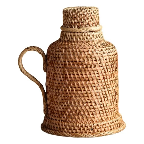 Handwoven Rattan Tea Coffee Vacuum Flask Vintage Thermo Jug Hot Water8319