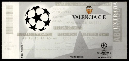 Ticket 2000 Valencia vs. Manchester United Champions League 44142