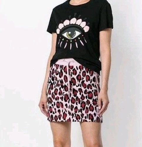 Kenzo Paris Women's Mini Skirt Sz L Pink Leopard Drawstring Waist Valentine