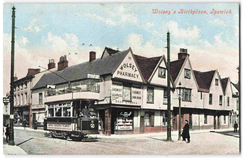 Ipswich Wolseys Birthplace Pharmacy Suffolk Tram - Pre WWI Valentines PC T09