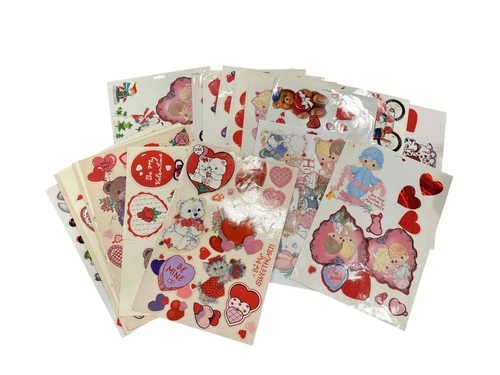 Window Clings Valentines Day Precious Moments Bear Cat Cupid Hearts Vintage