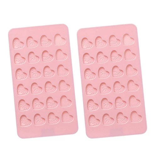 2pcs Pink Grid Heart Design DIY Silicone Chocolate Mold Valentines Day Cake
