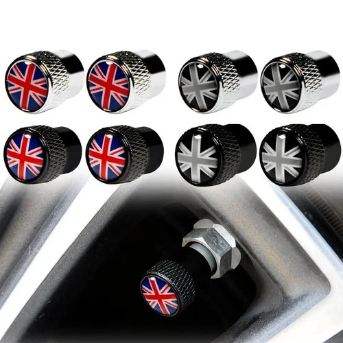 4x Aluminum UK Flag Cap Decor Car Wheel Tire Valve Dust Stem Air Cap Dust Cover