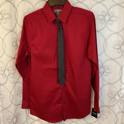 Boys Van Heusen Button Red Dress Shirt & Tie Size XL 18/20
