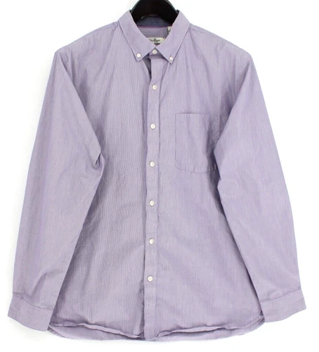 VAN HEUSEN Button Up Shirt Men's Size L Purple Striped Long Sleeve Classic Fit