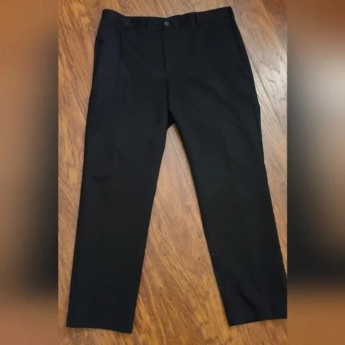 VAN HEUSEN Men's Pre-Owned 38x32 Black Flat Front Dress Pants