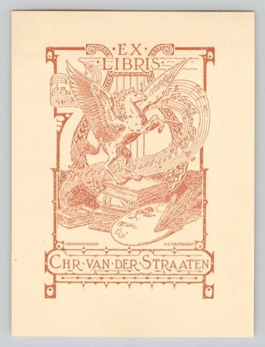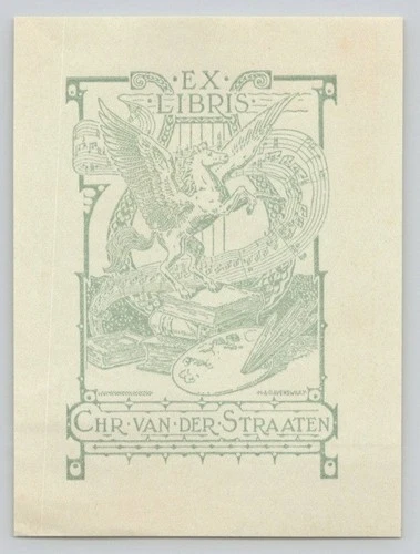 H. A. Ravenswaay for Chr. van der Straaten Engraved Bookplate Pegasus Lyre