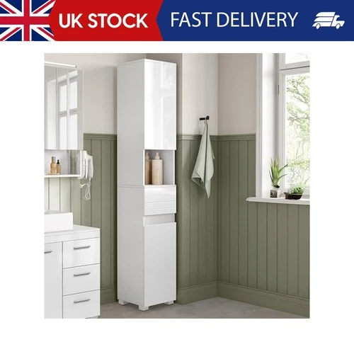 Slim Freestanding Bathroom Storage Cabinet - White, Adjustable Shelves, 80cm