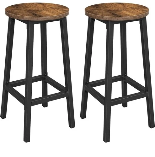 VASAGLE Bar Stool Set of 2 round Chair High Kitchen Seat Steel Frame Height 65cm