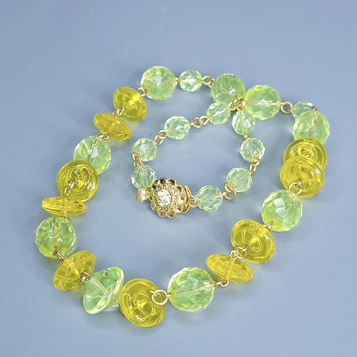 Uranium Glass Necklace 18'' Vaseline Yellow Czech Vintage Beads Women`s Jewelry