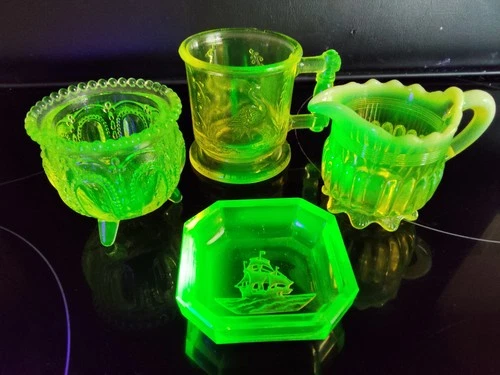Vintage Fenton Topaz Vaseline Opalescent Hobnail creamer and sugar bowl set
