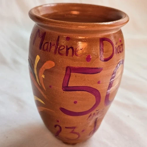 Mexican Folk Art Terracotta Vase Hummingbird Hand Painted Pottery Signed Diaz