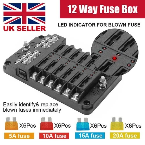 12 Way For Automotive Car Blade Fuse Block Holder Box Luminated Waterproof NEW