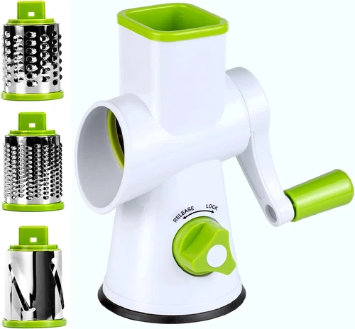 Rotary Cheese Grater with Stainless Steel Blades and Suction Base, Dishwasher Sa