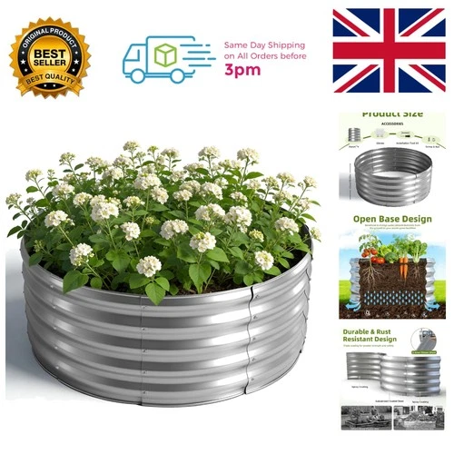 Sturdy Round Galvanized Garden Bed 90x90x43cm - Perfect for Flowers & Vegetables