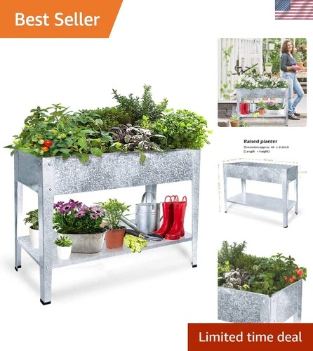 Space-Saving Elevated Garden Planter with Drainage & Stylish Galvanized Finish