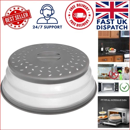 Heat Resistant Grey Microwave Cover with Steam Vents - Stylish Kitchen Essential