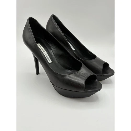 Vera Wang Lavender Black Leather Peep Toe Platform Stiletto Heels Women's 8M