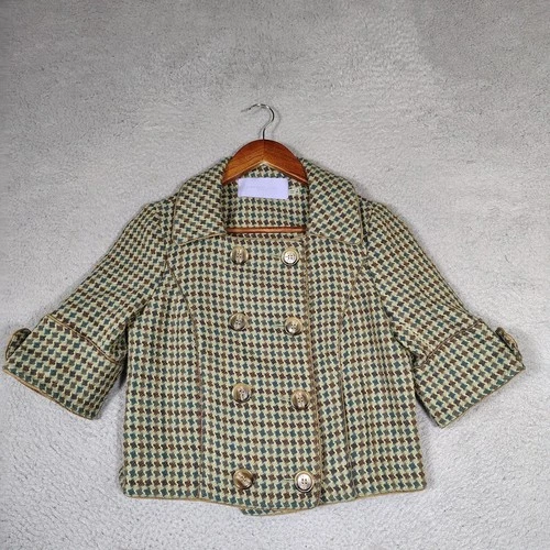 Vera Wang Lavender Label Jacket Women's 4/38 Beige 100% Wool Houndstooth Cropped