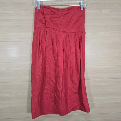 Vera Wang Lavender Label Burnt Orange Linen Strapless Dress Sz 8/42 Built in Bra