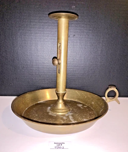 Brass Push Up Adjustable Candlestick Candle Holder Chamberstick Large Vintage