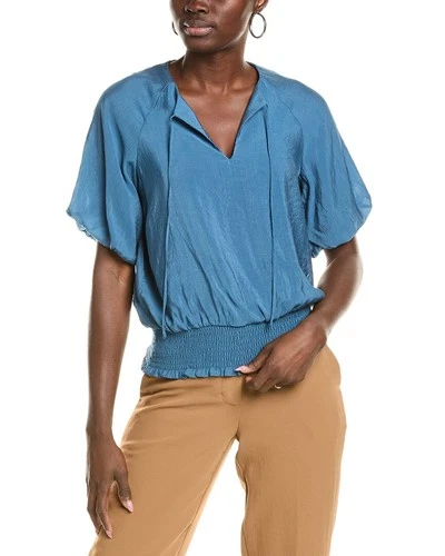 Vince Camuto Smocked Blouson Top Women's Blue Xs