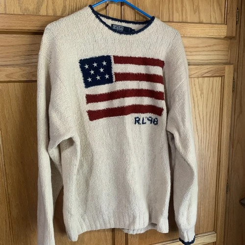 Vintage Polo Ralph Lauren American Flag Wool Sweater XL