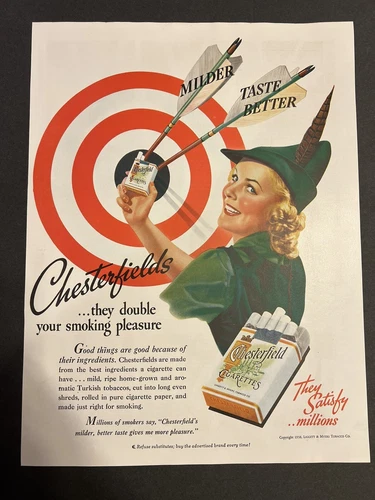 Vtg 1990s Chesterfield Cigarette AD, Robinhood, Tobacco, Smoker, Archery