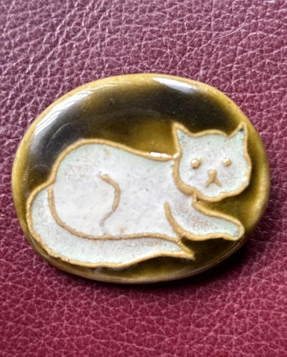 Cat Brooch Vintage 1960'S Pottery Clay Brooch Pin By CUE, Denmark 1 1/2 Inch