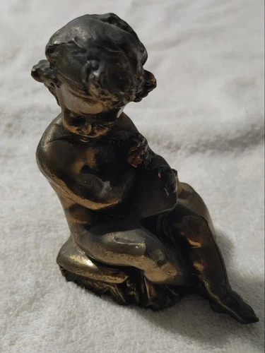 Vintage 1970's Colored Cast Metal Cherub Candle Or Pen Holder/Pre-owned