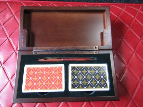 PRE-OWNED Vintage TWO PACKS Playing CARDS w/PEN & WOODEN BOX - 1970's