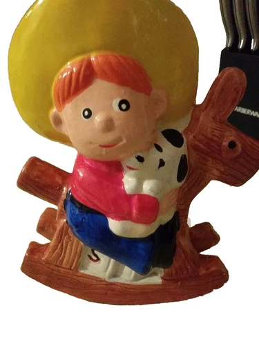 Boy On Rocking Horse Ceramic Vintage Bank Nursery Item Mint Kitchy Fifties