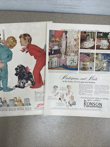 Vintage Print Ads - Zippo And Ronson Lighters Lot Of 2 - from 50’s Life Mags.