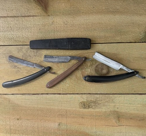 5 Vintage Straight Razors Engstrom,Bowdins Wedge, Ran Tan Karus Red Devil