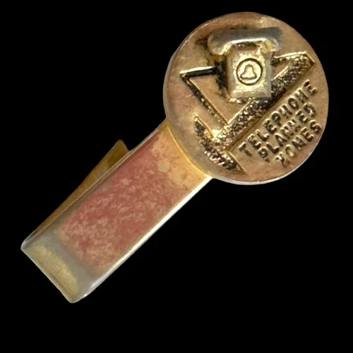 MA Bell Employee Rotary Telephone Planned Homes Gold Tone Tie Clip Bar 1950’s