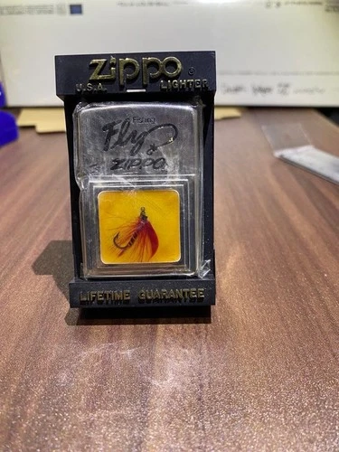 Vintage Zippo 1997 Fly Fishing Oil Lighter with Case Unfired