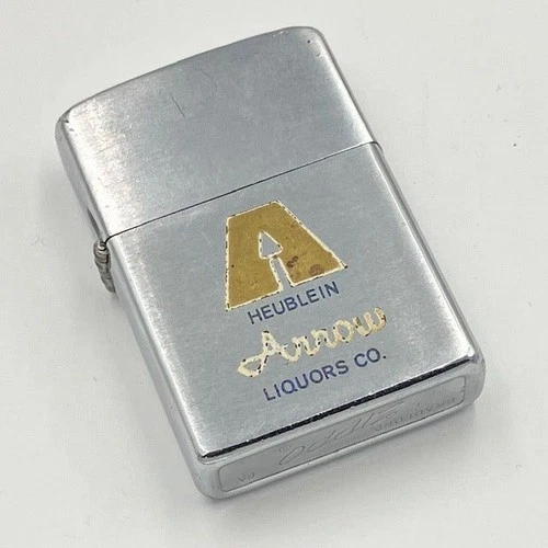Vintage Zippo 1973 Heublein Arrow Liquors Co. Brushed Chrome Finish Oil Lighter