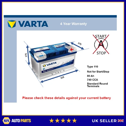 Battery fits ASTON MARTIN VIRAGE 5.3 6.3 88 to 00 Varta 110 740A 80Ah Quality