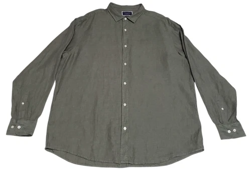 Charles Tyrwhitt Pure Linen Shirt Men's 2XL Olive Green Long Sleeve Breathable