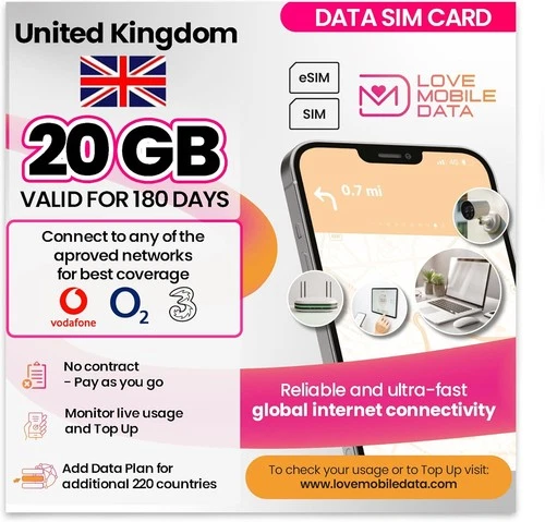 Love Mobile Data Only Sim Card 20GB 180 Days UK Multi-Network 4G/5G Prepaid