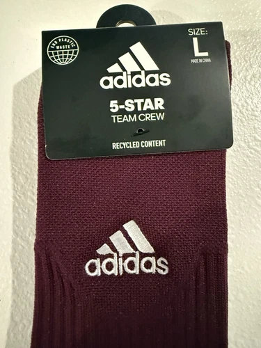 Adidas 5 Star Crew Socks Aeroready Ultra Cushioned Size L 9.5-12 Maroon